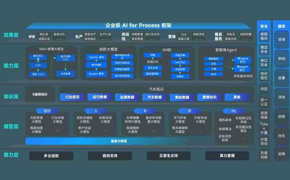 GOWIN问学智车解决方案是一套基于AI技术的汽车行业智能化系统,,,覆盖从底层算力到顶层AI应用的全栈方案。。。方案由算力层、、、模型层和应用层组成:算力层,,,,方案支持多种一体机配置,,,,具备云端灵活部署、、多云适配以及动态优化计算资源的能力;模型层,,,,GOWIN问学平台版提供了企业级AI应用一站式构建与管理平台,,,,支持基于后训练强化技术的汽车企业专属模型的训练、、、评测和运营;应用层,,,GOWIN问学DeepSeek版提供包括超级员工、、、智能招采、、、智能营销、、智能客服、、AI for BI等一系列解决方案,,,可助力汽车行业实现数字化转型,,,让管理更智能、、、响应更敏捷。。